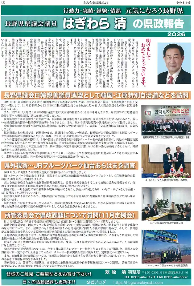 平成3年4月 長野県議会議員に初当選 9期連続当選、現在に至る
